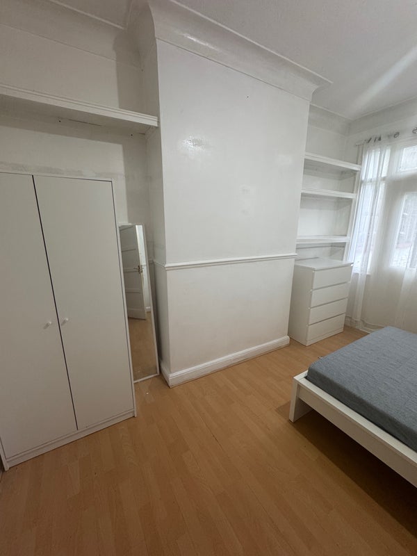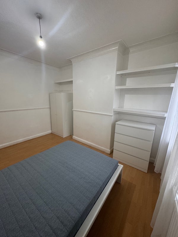 - Bedroom is a large double room with a double bed, chest of draws and a wardrobe. The room also features built in shelves.