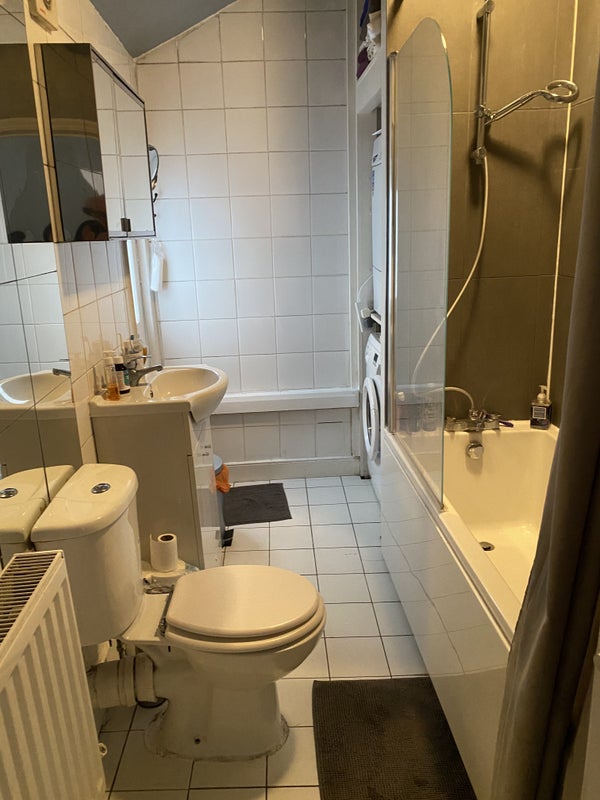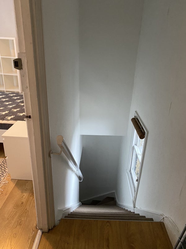 The flat is on split levels with 2 bedrooms upstairs ... with the bathroom.