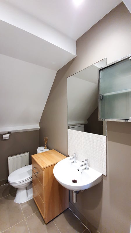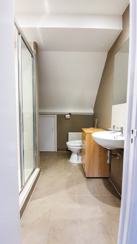 There is a large private bathroom included in this lovely loft conversion, which was finished only a few years ago. Also double bed and a new mattress is supplied, although it was delivered after the photos were taken.