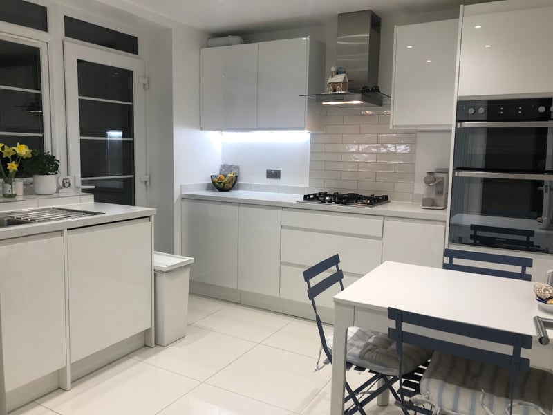 Communal kitchen is good size with all mod cons like build in fridge/freezer, Neff dishwasher, gas cooker and double oven. Washing machine is placed in the bathroom to keep noise level in the kitchen down.