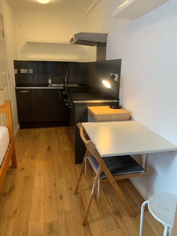 Availabe Now - A modern single studio flat (for 1 person only) to rent above a shop in the heart of Hampstead Heath, directly opposite Hampstead Heath station.