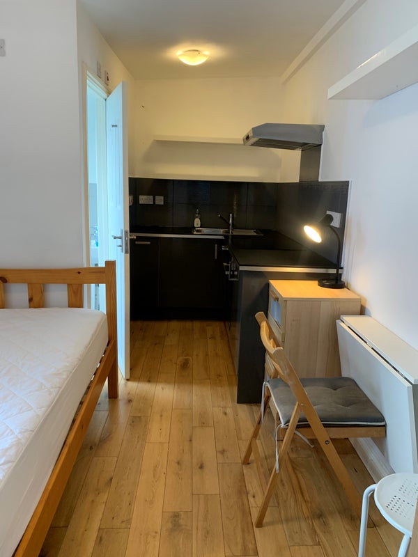 The property features wood floor throughout, a good sized studio room with an open plan fitted kitchen with fridge/freezer, hob & oven. There is also a separeate bathrom with shower & WC.