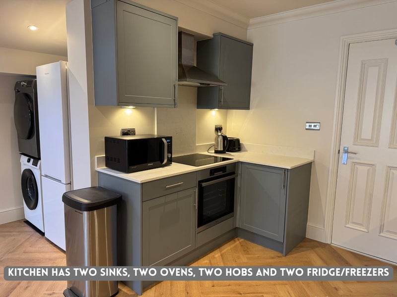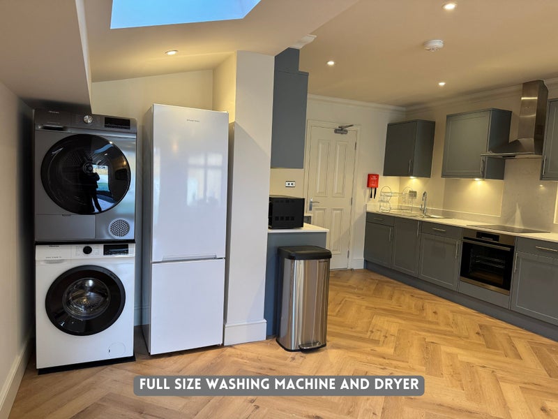 • Open-Plan Shared Kitchen & Dining Area: A beautiful, fully equipped kitchen with fridge/freezer (x2), oven(x2), microwave, washing machine and dryer. Perfect for quick and easy meal prep or enjoying social dinners with housemates.