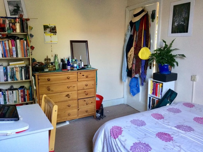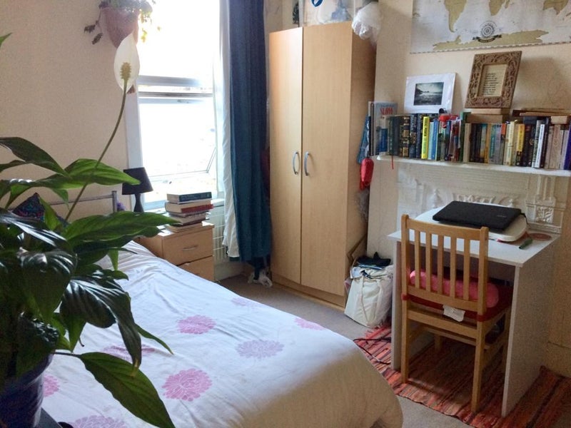 The room is a good size with a view over the garden, high ceilings and plenty of light as you can see in the pictures. It's furnished and comes with a bed, wardrobe, bookshelves and chest of drawers. There's even room for a small desk if you've got one you're bringing with you.