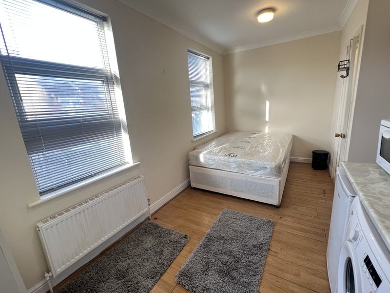 Fully self contained a medium sized, bright studio flat. Fitted kitchenette with wm, ff and cooker. En-suite shower /wc. Brand new bed/mattress.