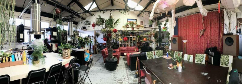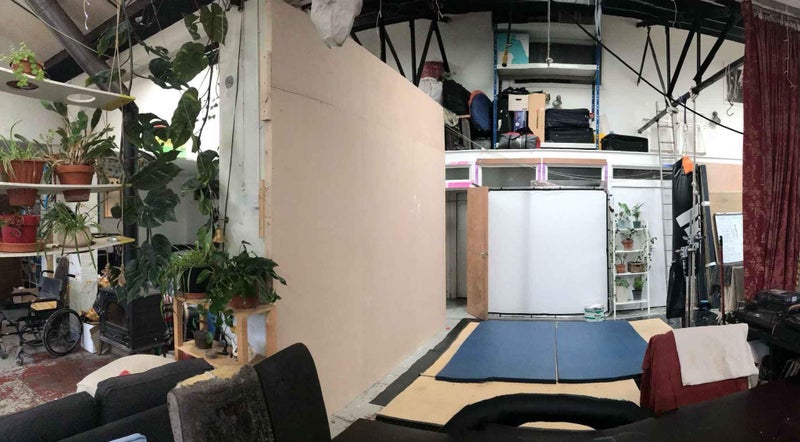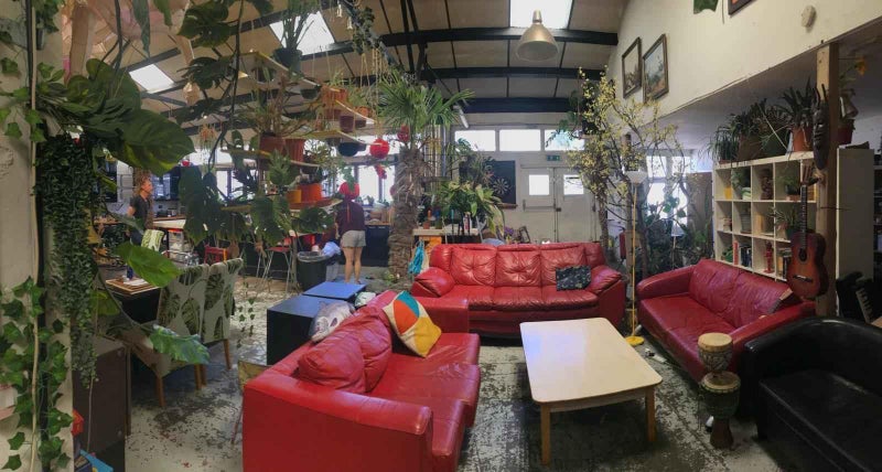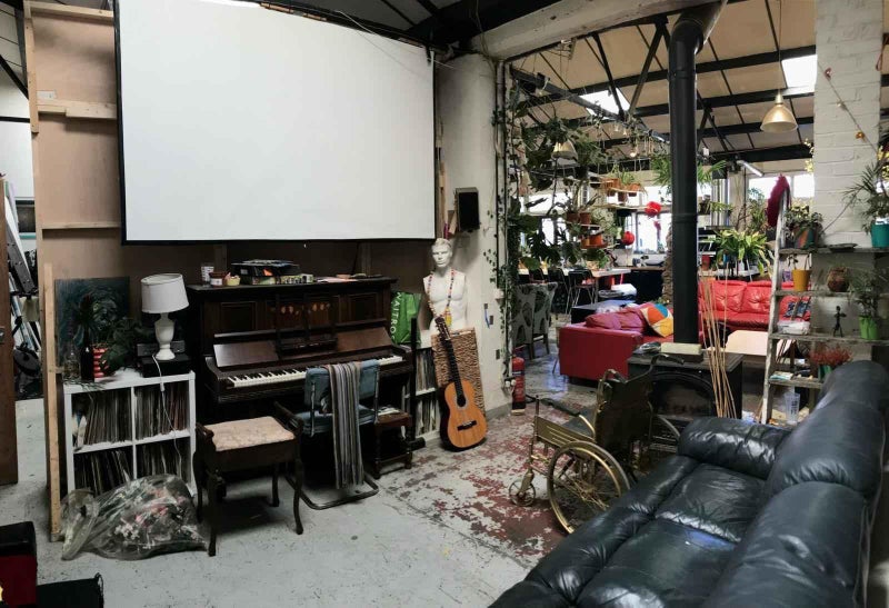 The room is in Unit E2 in Arena Design Centre, a community of warehouses with a communal garden, gym and workshop.