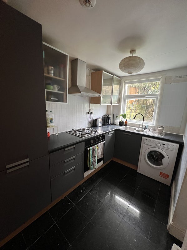 The flat is really spacious and great for two people, with a lovely, bright open plan living room/hallway/kitchen, one shared bathroom and huge private garden! The bedroom is a good size and comes with a wardrobe and bed frame. The previous tenant is keen to leave her furniture for you as she won't be able to take it abroad, this is a mattress, desk and chair, although this can be discussed.