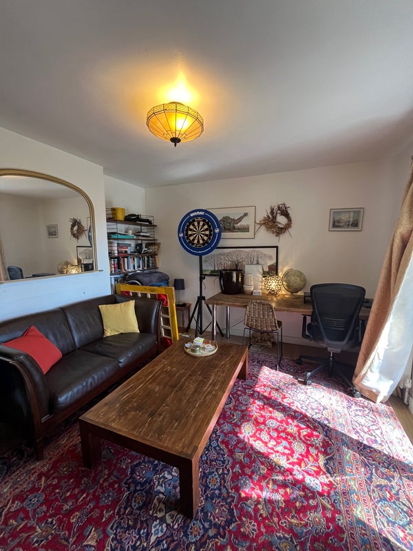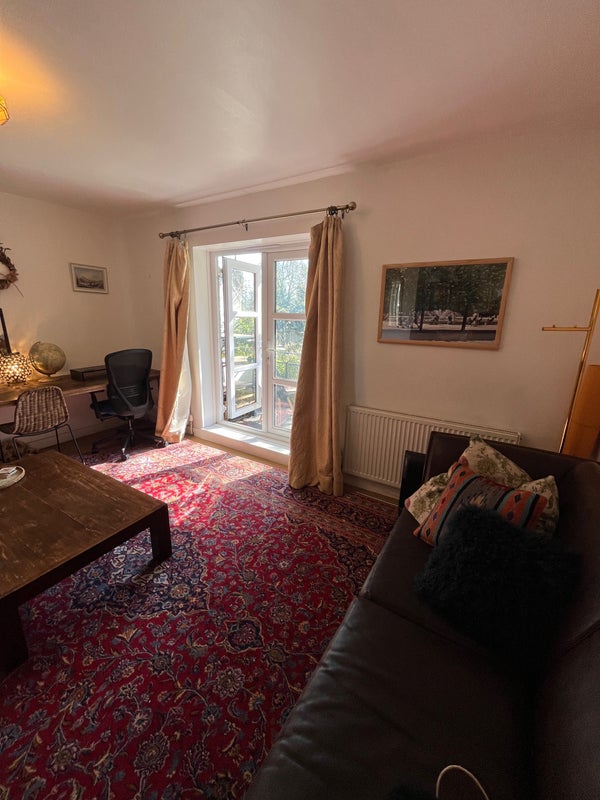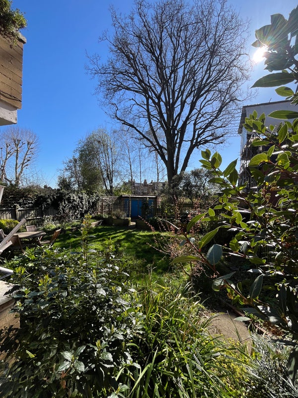 The flat: the room is small but cosy and cute, with the best view in the house directly onto our gorgeous garden. Lots of natural light and so peaceful to hear the birds chirping with no street noise at all. The garden is a dream in summer and we’ve had many BBQs and outdoor dinners. The flat is a good size with a large living room with desk if you WFH with big doors looking onto our balcony and garden. The kitchen gets beautiful light and is a good size and fully equipped with everything you’d need. We also have a big storage cupboard for suitcases etc and another storage cupboard right outside this bedroom for your use. You can park your bike inside the locked entrance room so very secure.