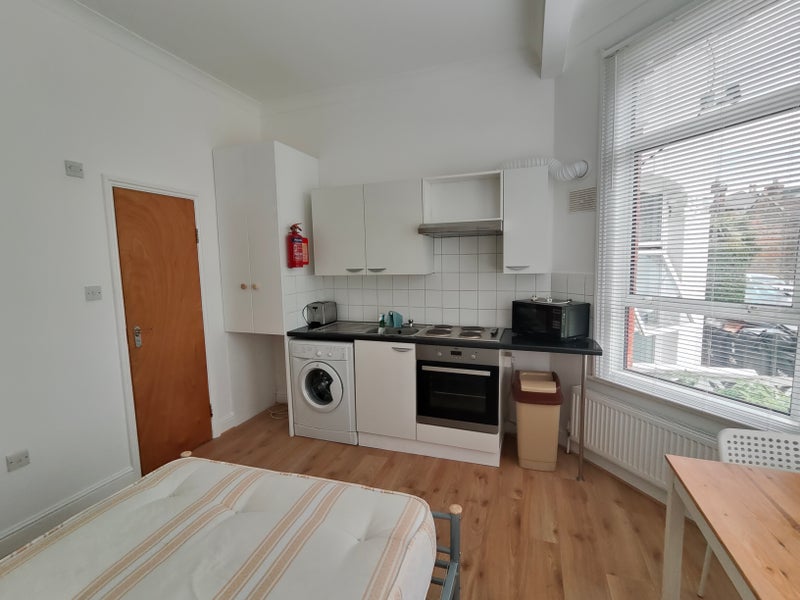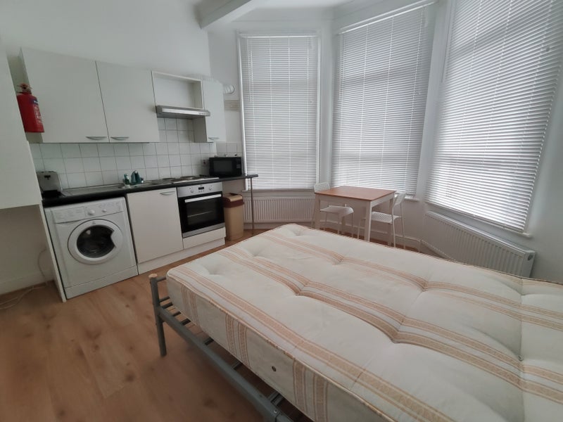 In the heart of the popular Harringay area just north of Finsbury Park, is a spacious studio flat on a quiet road near local shops and transport links. 5 mins walk to Harringay Green Lanes Overground or 5 mins bus to Manor House tube which is 25 mins (7 stops) to Central London.