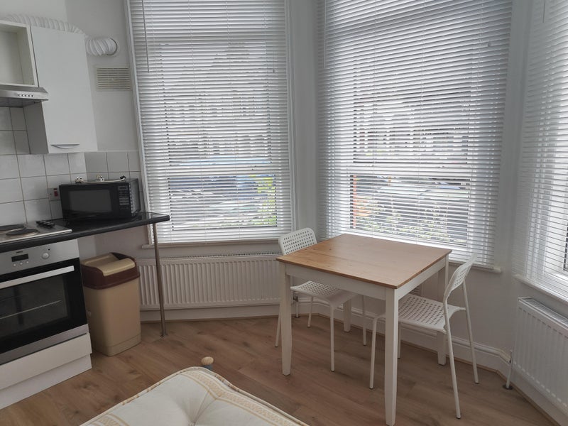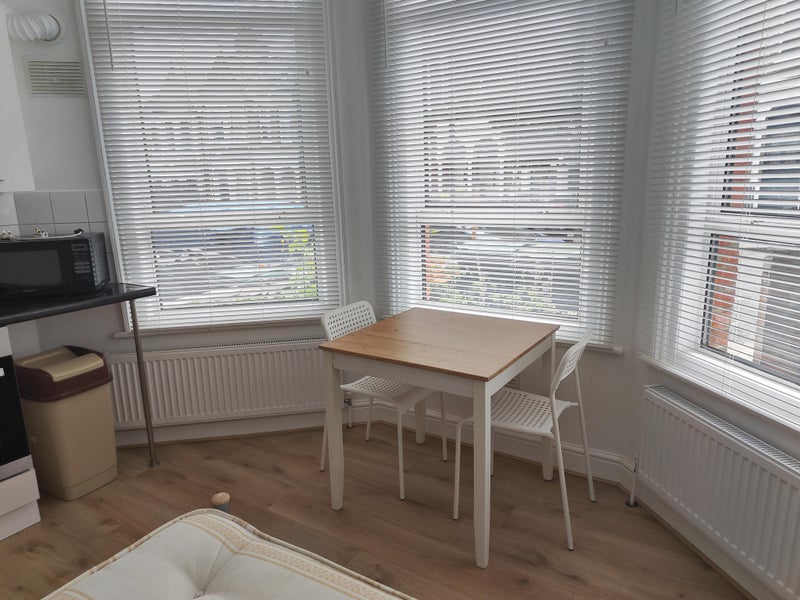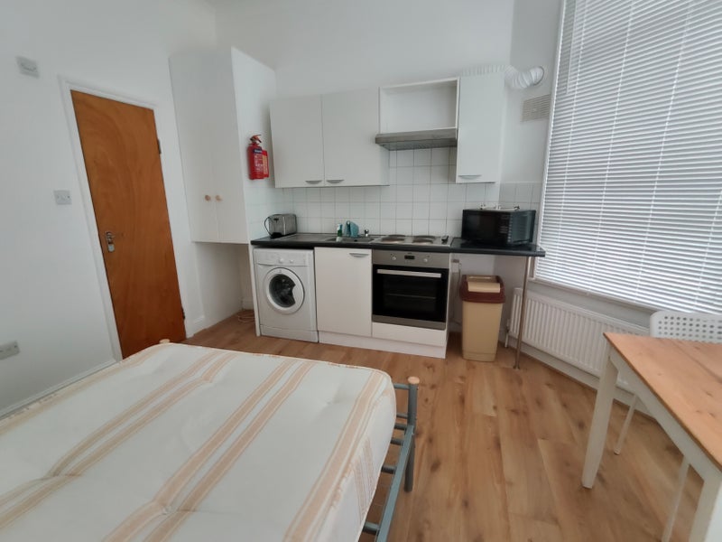 Private fitted kitchen and bathroom. Fully furnished. Suit professional single only. Room has laminate flooring double bed and a double wardrobe with a large chest. Flat will be reoainted and be like new. New appliances incleded.