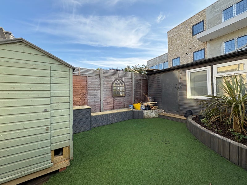 At the back of the garden, there is a small outhouse, which is a 1 bed studio flat, with its own bathroom.