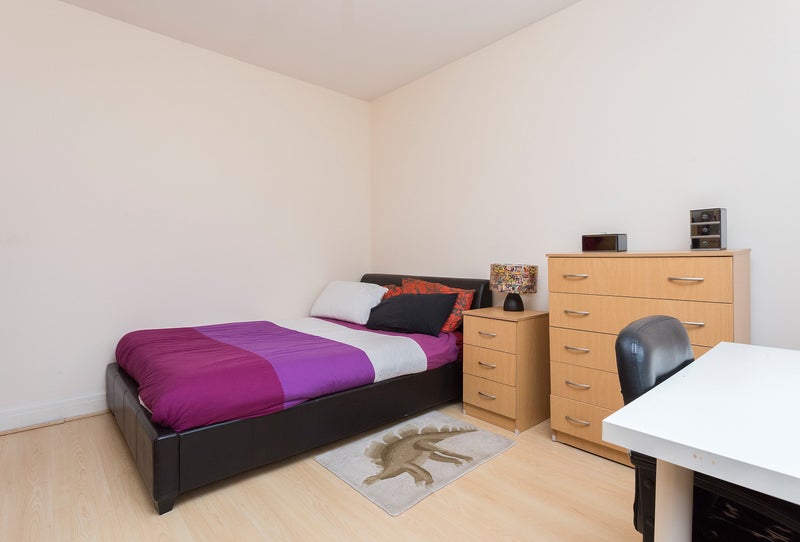 Your large double bedroom has 2 double wardrobes, desk, chest of drawers, double bed, beside table and a large bay window.