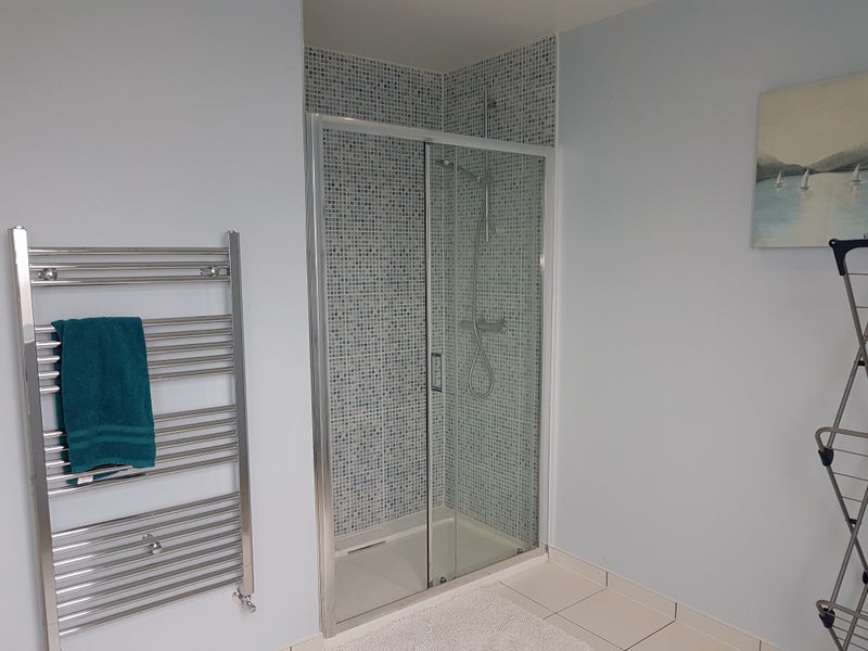 You will be sharing with a family (two adults two children). You also have your own bathroom.