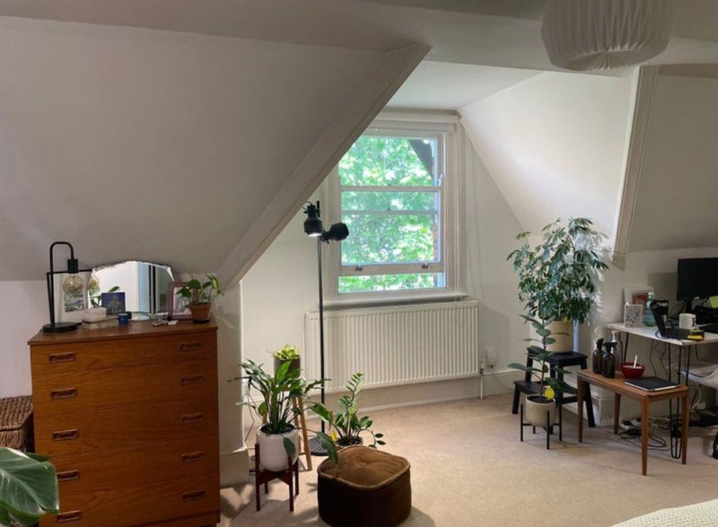 Large, spacious double room on the top floor of a friendly flatshare in Herne Hill. The room is on its own floor with a bathroom directly next door, so it feels almost like an en-suite setup.