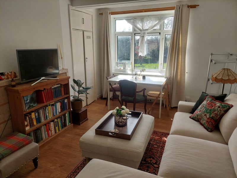 The room enjoys lovely views—overlooking a charming church on one side and a pleasant outlook on the other. The area is safe, peaceful, and well-maintained, making it a great place to live.