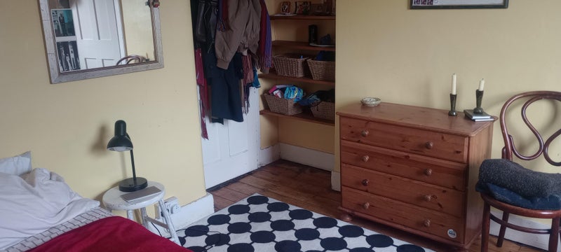We have a yellow room to let at the top of a large Victorian house, overlooking a very green garden. The room has a desk for studying or writing, wooden floors, double bed. and a nice view. The house has an enormous modern eat in kitchen plus lounge plus 2 bathrooms and garden with squirrels. Looking for friendly and independent person. Herne Hill has great transport - 10 mins to Victoria and 15 mins to Kings Cross; has a large park, a lido, a gym.