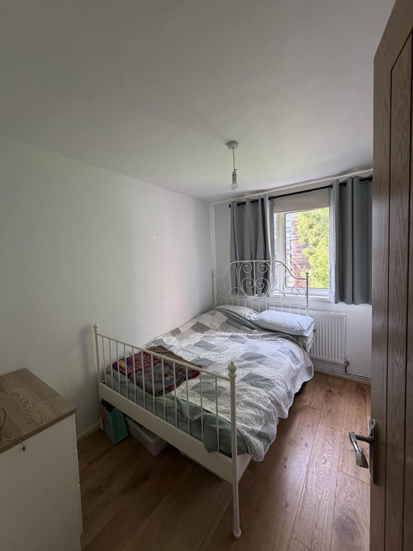 We're looking for a third housemate for the summer. The room is a simple double room with great under-bed storage, chest of drawers and access to storage cupboard in the flat.