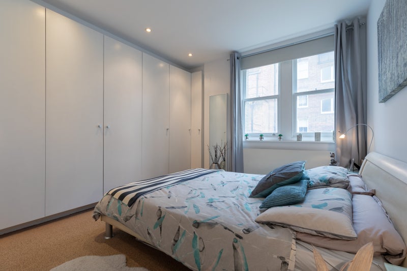 This is a large double bedroom in an attractive and bright two-bedroom apartment located in a prestigious sought-after period terrace in Kensington.