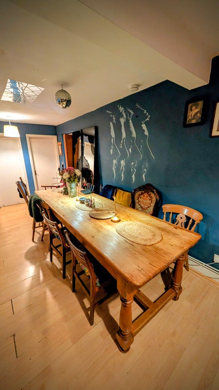 We are a happy easy going couple, and live here with Charlie our lodger who's currently doing a postgrad at the RCA. We are, as you can probably tell from the look of the flat, a fairly boho lot. He is a photographer, writer and runs a small tour guiding company, she teaches pilates. The atmosphere is relaxed, we sit down to a properly cooked evening meal every night and this is included in the rent, as are all bills. Diane is a fantastic cook and we eat a largely plant based diet, with a bit of cheese and the odd egg. Breakfast is available but you help yourself. As you can see from the pictures we have a large comfortable living room and everyone is always welcome to hang out there to watch TV, scoff chocs, help finish off a bottle of wine etc. We also love music - the place if full of instruments of one kind or another. We have the odd get together (sometimes Sunday night film club where we get the projector and the big screen out/the occasional backgammon Sunday) but generally the house is quiet.