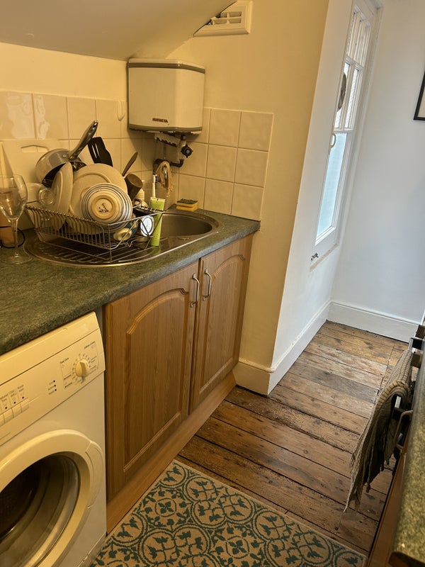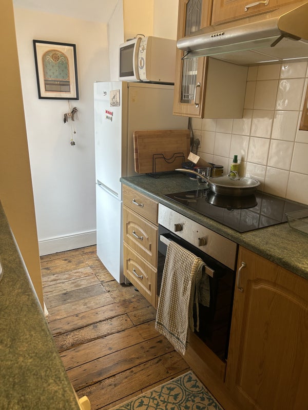 Lovely top floor studio room with your own separate kitchen in victorian House. Original features, fireplace and original floorboards throughout, full gas central heating, fully fitted kitchen with washing machine.