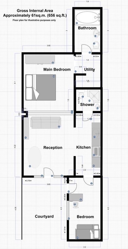 The kitchen is fully equipped with dishwasher, fridge and freezer. There is a second shower room, also with WC and basin. and a second double bedroom with a workstation.