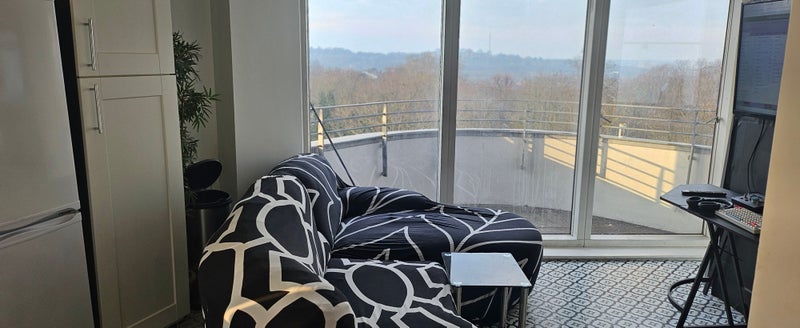 The flat has a compact, easy-to-maintain living room, making it ideal for someone who values a spacious bedroom and a cosy, practical home.