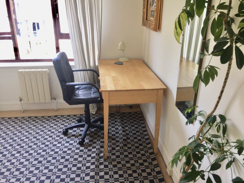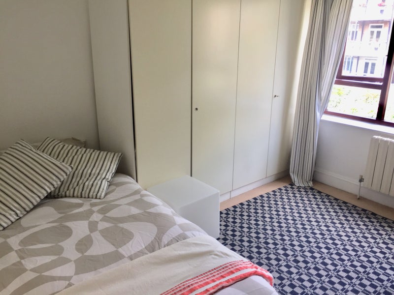 The room has a writing desk, single bed, wardrobe and drawers, is peaceful and quiet, overlooking a well maintained private garden. All linen, bedding and towels provided. There is a washing machine available for use.