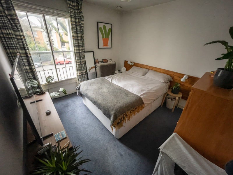 You'll occupy a good sized double room. It has a tall set of drawers and loads of natural light, with built in storage, side table, space for a desk and extra storage outside your room and in loft if needed.
