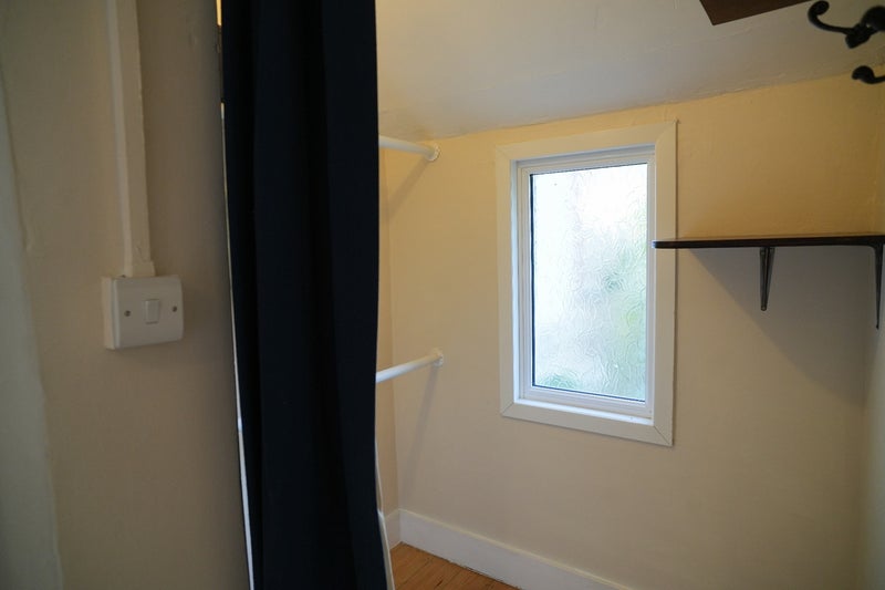 I have a lovely double room available in a spacious ground-floor flat. The flat has beautiful original exposed wooden floorboards, high ceilings and is finished well throughout. The room has a window looking out onto the neighbours garden. There is a peaceful rear garden that belongs to just the flat. The room has an attached walk-in storage/closet space with its own window and shelving, perfect for keeping your main bedroom area clutter-free.