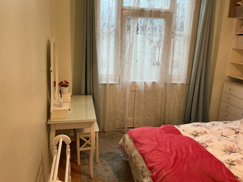 The bedroom has lots of storage space and shelves. I am the only person living here with my cats as my daughters have all grown up and left home hence the spare bedroom. It is nice and quiet, as it’s just me, I don’t have a tv, just lots of books. There is a back garden but the only access is through my bedroom which I don’t mind you using just as long as I’m not in my bedroom, I’m pretty chilled out.