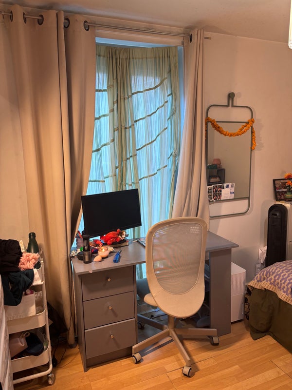 The bedroom furniture, aside from the bed frame and mattress, is available to buy or can be cleared before you move in -- just let me know!