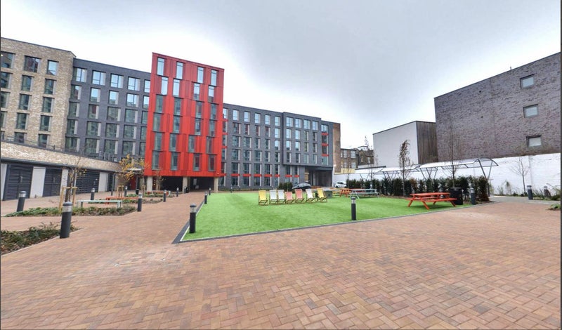 All residents are UCL students. The flat has 7 ensuites with small double (3/4) beds, a huge shared kitchen with two fridges, two ovens, a microwave, sofas, and a weekly cleaning of the common areas. There is a study area, an entertainment area, and a large courtyard. Only half a minute's walk from the underground station.