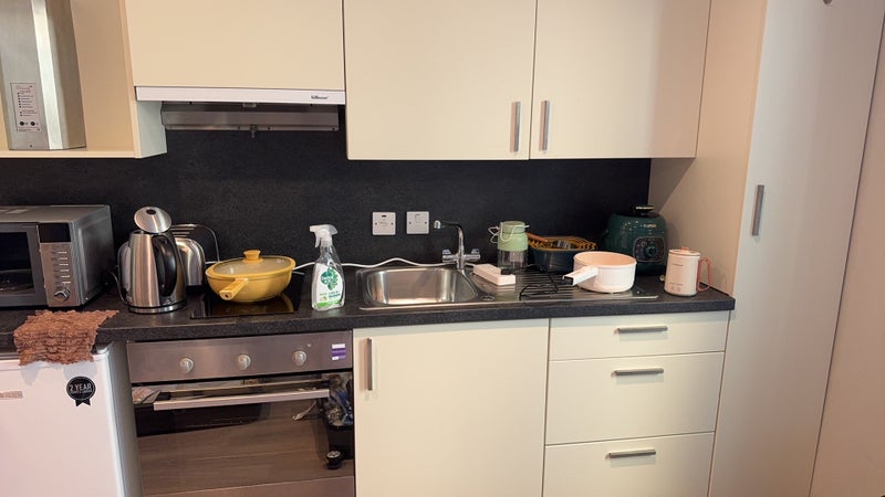 【Facilities】: The room is fully furnished with appliances, including a microwave, oven, induction cooker, kettle, refrigerator (with both a cold and a freezer compartment), two desks, a toaster, etc. The apartment also has many facilities, such as a large free study room (with a paid printer), a common lounge, a laundry room (with many machines), a ping-pong table, a smoking area, a pool table, and a cinema room on the first floor.