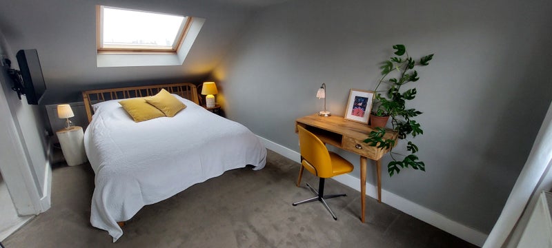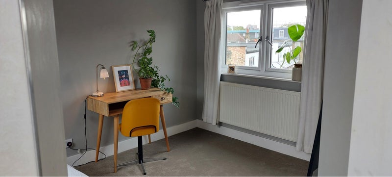 This is a cosy well lit room with excellent soundproofing. Janet and I live at the house part time with our daughter and Tom our 24 year old lodger. This is a lovely en-suite attic room with great views to the east and west, in a comfortable 4 bed house in Homerton. The house is open for shared general use rooms and garden. The location is good for transport links 8 minute walk to Homerton station with buses a 3 walk.