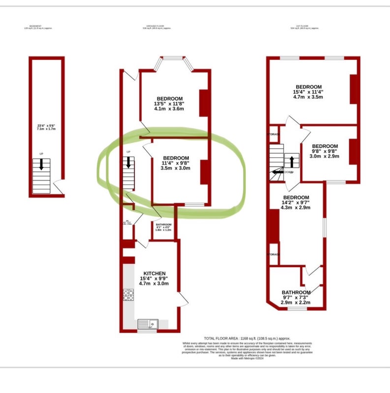 The room is £1020 a month - 3.5m x 3m (circled on the floor plan pic), not incl bills.