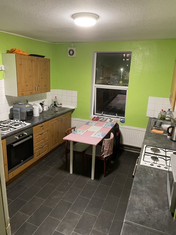 shared kitchen facilities, 2 showers, 1 bathroom, 4 toilets, shared lounge and garden, Unlimited Fibre Optics Wireless Broadband Internet, washing machine and tumble dryer. Bicycle storage. 1 min walk to Sainsbury’s supermarket.
