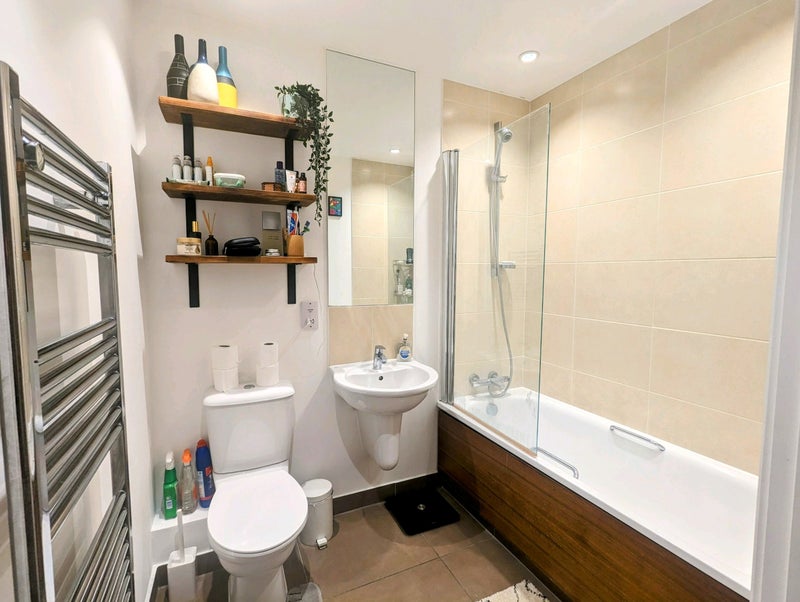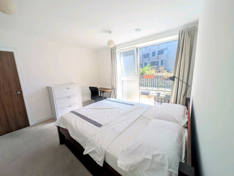 2. Shared Areas: Spacious open plan living room/kitchen with floor to ceiling windows and a large adjoining patio with a barbeque, table and lots of plants. There is a large sofa area with a television and a separate dining table, which is great for Sunday roasts. The kitchen is fully equipped with lots of cupboard space and all the appliances you could need (including a dishwasher).