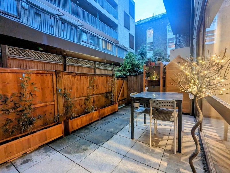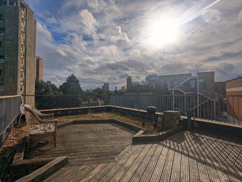 4. Ample outside space: Large shared roof terrace (with lift access) with table and chairs for eating, amazing for enjoying the sun or just getting a bit of fresh air overlooking the street. Private secure bike storage, entry only with key fob right outside our living room door.