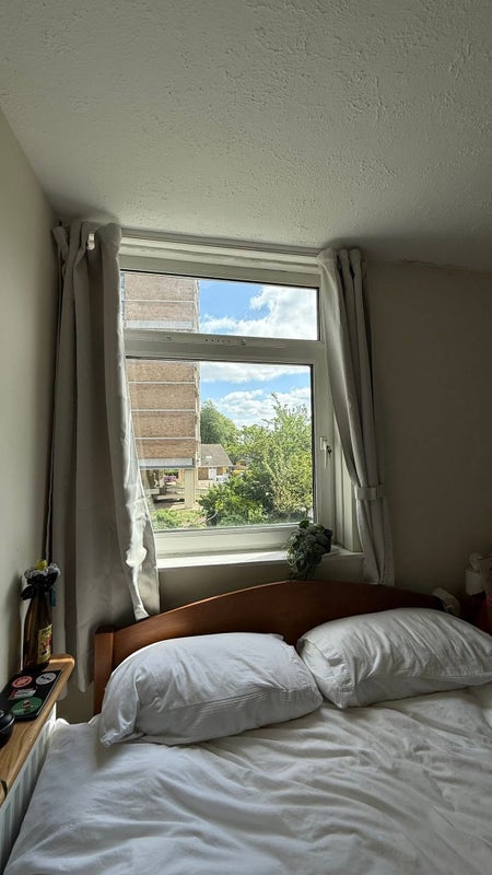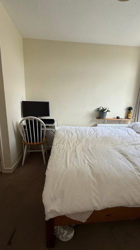It's a big double east facing room that gets morning and comes furnished with a bed, bedside table, wardrobe, and a desk if you wfh. Everything will be cleared out so you can make yourself at home! The downstairs has a big open living room, kitchen and dining and a toilet with washing machine and dryer, and upstairs has the bedrooms and the shared main bathroom.