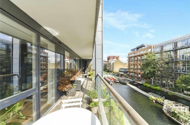 Very bright, modern and spacious 3 bedroom, 100 sqm apartment with a 30 sqm terrace overlooking the canal. Quality kitchen with Miele appliances and quality finishes in both bathrooms. 6 minute walk to Haggerston station. All rooms opening on to a generous sized terrace overlooking the peaceful Kingsland Basin, a canal nature reserve just off the Regents canal. Very convenient location close to the renowned Towpath cafe and De Beauvoir Deli and conveniently located for all major shops, just a short walk along the Regents canal to Angel.