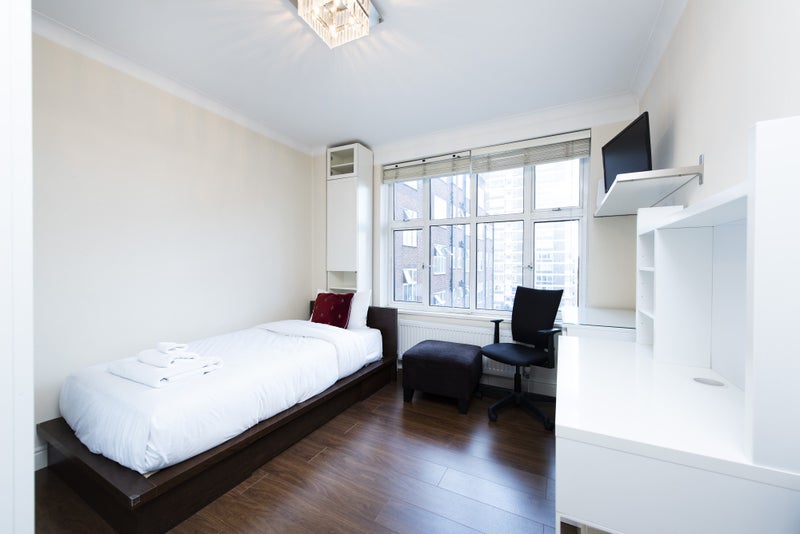 Large, bright, ensuite room available in a modern, fully-furnished apartment near Hyde Park with two male professionals (one doctor/founder and one academic).