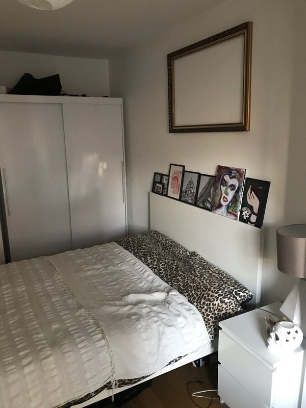 The room has got a large, double- glazed window in it, which allows a lot of natural light to enter. It comes furnished with a matching double-bed, two bedside tables, wardrobe, and chest of drawers. The bathroom is medium size and features a shower with a recently changed shower mixer, that allows comfortable adjusting of temperature. It is very bright and has got a big mirror. It will be shared with another lady.