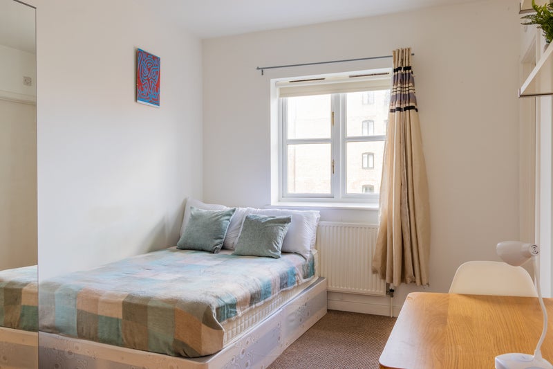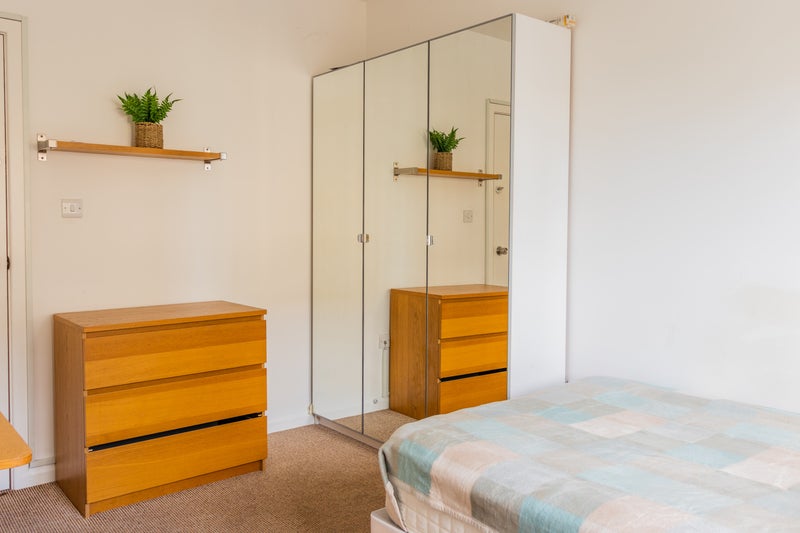 This bright double en-suite bedroom next to the river is a great size. Located on the 1st floor it contains a double mirrored wardrbobe, chest of drawers and also a desk.