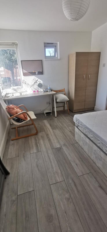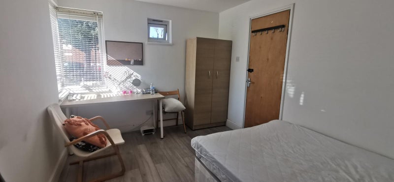* Fully furnished room with a double bed, wardrobes, and chest of drawers. Desk and chairs.