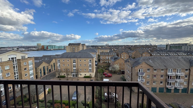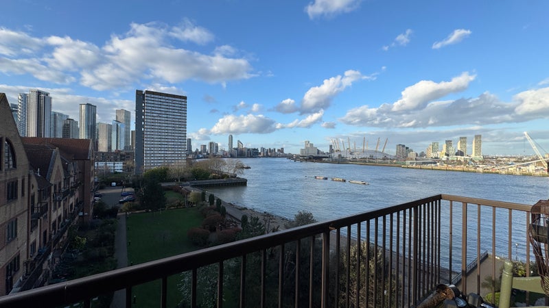 Spacious living room with a balcony that overlooks Thames and the O2