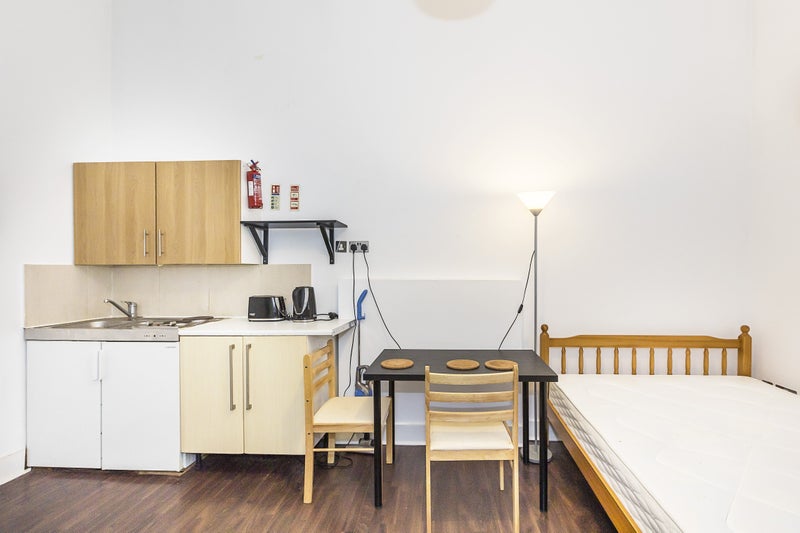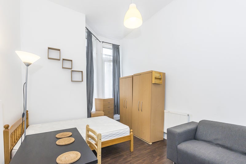 This is a great bedsit room available on the ground floor of the building in Islington near Holloway Road. It has a double bed and storage furniture included and a kitchenette with hobs and fridge. There is a communal bathroom and shower room shared between 2 other rooms and a communal laundry room for the building. There is also a communal garden at the back of the building and an onsite caretaker. Gas and water bills included.