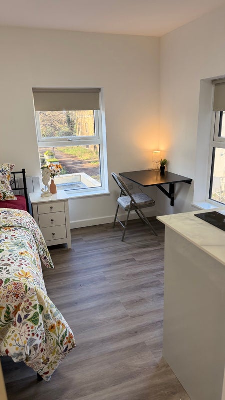The bedsit provides a private living and sleeping space.