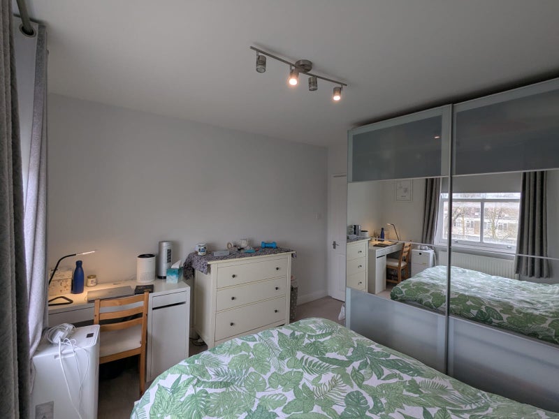 One good sized double bedroom and a further single bedroom (with desk and a built in wardrobe). Plenty of storage in the flat including a built in cupboard and drawers in the hallway.