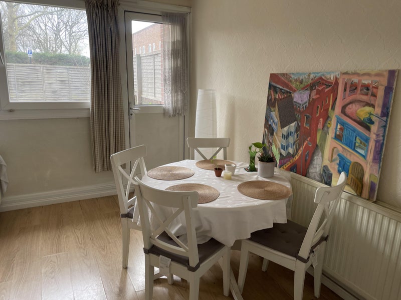 I am subletting my lovely room for the months of July and August till September 18th as I am leaving London. Possibility to renew contract past September with landlord. The room comes furnished and the flat includes a bathroom and separate toilet, a large living room with sofas and dining table, a kitchen with many amenities as well as an entryway for coats and shoes. There is also a large garden at the back and a small terrace at the entrance.