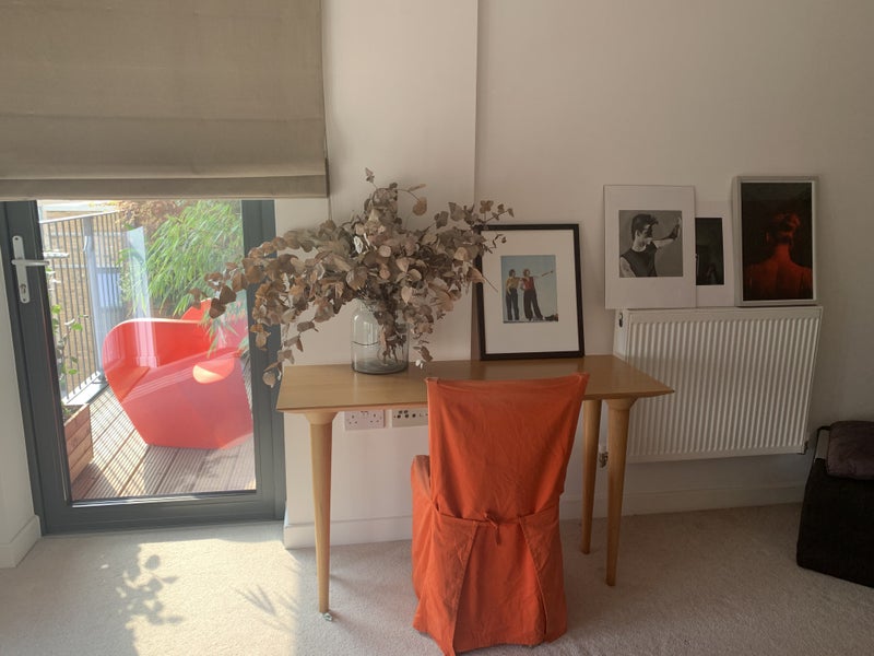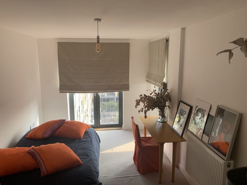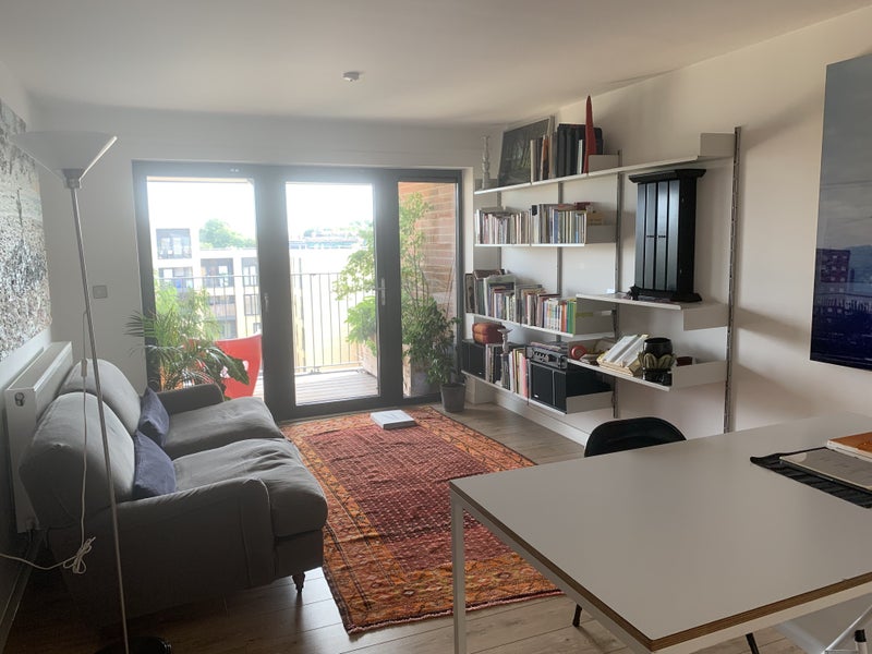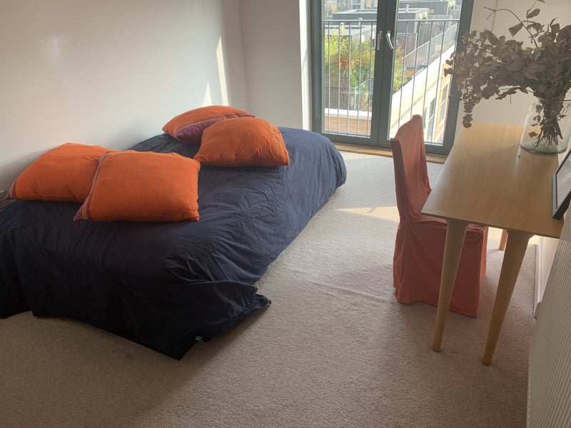 Fully furnished contemporary room in 70 sq. contemporary 2 beds flat with balcony - design furnitures - weekly cleaning - built in wardrobe, floor to ceiling windows,. bike shed available. the flat is on top floor of a 5 storey building with lift.